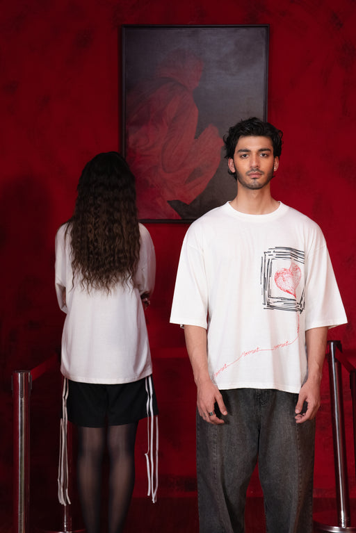 Description:Emotion takes a soft form with this white tee. A small heart made from plush Sherpa fabric is outlined by fine embroidery—creating contrast in texture and tenderness. Minimal yet meaningful, this piece speaks to quiet...