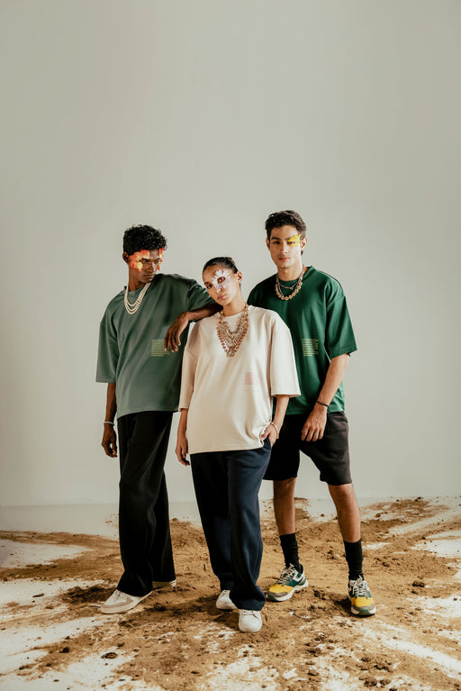 Refresh your style with our White Sand Tee. Crafted from a luxurious blend of 70% polyester and 30% cotton, this oversized T-shirt in the serene Pantone White Sand hue brings both comfort and sophistication to...