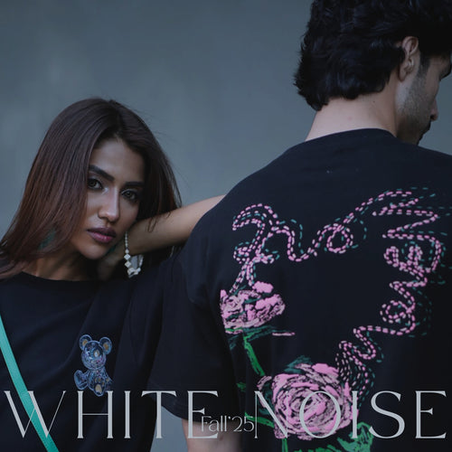 Description:Crafted as a canvas of emotion, this black drop-shoulder tee from the Imprint collection captures the raw essence of human feeling. Bold, chaotic screen prints dominate both front and back—heavy in texture and intent—evoking the...