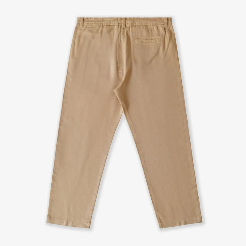 In a collection defined by chaos and color, these khaki linen pants offer a calm pause. Unembellished and refined, they represent grounding—a moment of stillness in the emotional spectrum. Crafted in soft linen with a structured