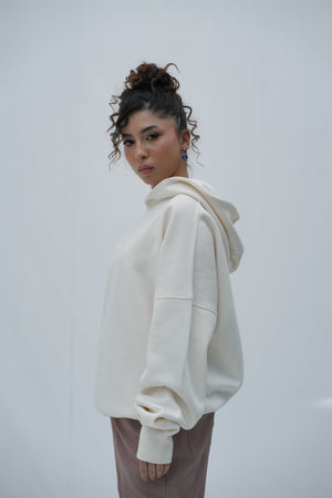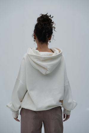 A mid-weight fleece piece with textured calligraphy on the chest and sleeve detailing for subtle personality. Soft on the inside with a relaxed structure, it adds cultural expression while staying minimal and versatile for seasonal layering